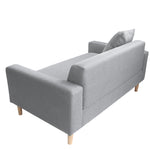 • 2 COLOURS: The couch is upholstered in high quality, durable linen like fabric. The fabric is available in Light Grey and Dark Grey, which both harmonize superbly with the wooden legs. The sofa has a fully upholstered back so can be used in the middle of your livingroom.