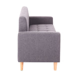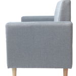 • 4 COLOURS: The couch is upholstered in high quality, durable linen like fabric. The fabric is available in Light Grey, Dark Grey, Grey and Taupe, which both harmonize superbly with the wooden legs. The sofa has a fully upholstered back so can be used in the middle of your livingroom.