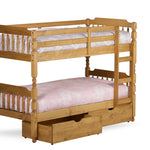 The Colonial bunk bed is supplied flat-packed, making it easy to transport and assemble. With the easy-to-follow instructions provided, you can have this bunk bed set up in no time. There is also a gap beneath the bed, providing a convenient storage area for items you don't want on display. You can even add under-bed drawers (available separately) for extra storage space.