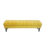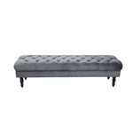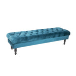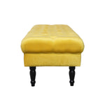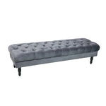 A modern, decorative bench with wooden legs. The upholstery is soft and high quality, the padded top is comfortable and not easily deformed. The bench can be used in any room in the house as a seat, footrest or feature piece.