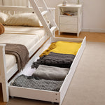 Enhance your child's bedroom with our sleek and functional drawer. Designed to perfectly complement most of our bunk beds and wooden beds, including Hannah, Oxford, Malvern, Spindle, Durham, Madrid, Lauren, Clifton, and more, this drawer offers ample storage for clothes, toys, or books. Available in two stylish colors, Grey and Satin White, it's easy to assemble and a perfect space-saving solution for any nursery or kids' room.