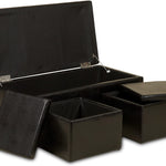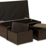 Pre built storage boxes; Available in black or brown Includes 1 large box and 2 smaller boxes; Smaller units packed into the large unit Suitable seating for multiple people Dimensions...