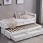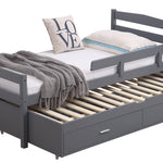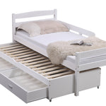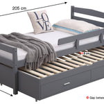 We have also included two storage drawers that fit neatly beneath the trundle, providing plenty of space to store your child's toys, books, and extra blankets. Moreover, for extra safety, our bed features a guardrail to prevent any accidental falls.