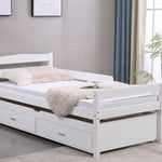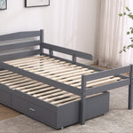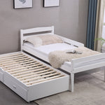 We have also included two storage drawers that fit neatly beneath the trundle, providing plenty of space to store your child's toys, books, and extra blankets. Moreover, for extra safety, our bed features a guardrail to prevent any accidental falls.