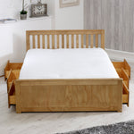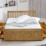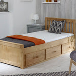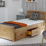 With six pine drawers on the double beds and three on the single bed, you'll have plenty of space to store all your belongings. And because the handles are positioned inwards, you won't have to worry about banging your calves as you get in and out of bed. Plus, the plywood base of the drawers ensures that your items stay safely stored away.